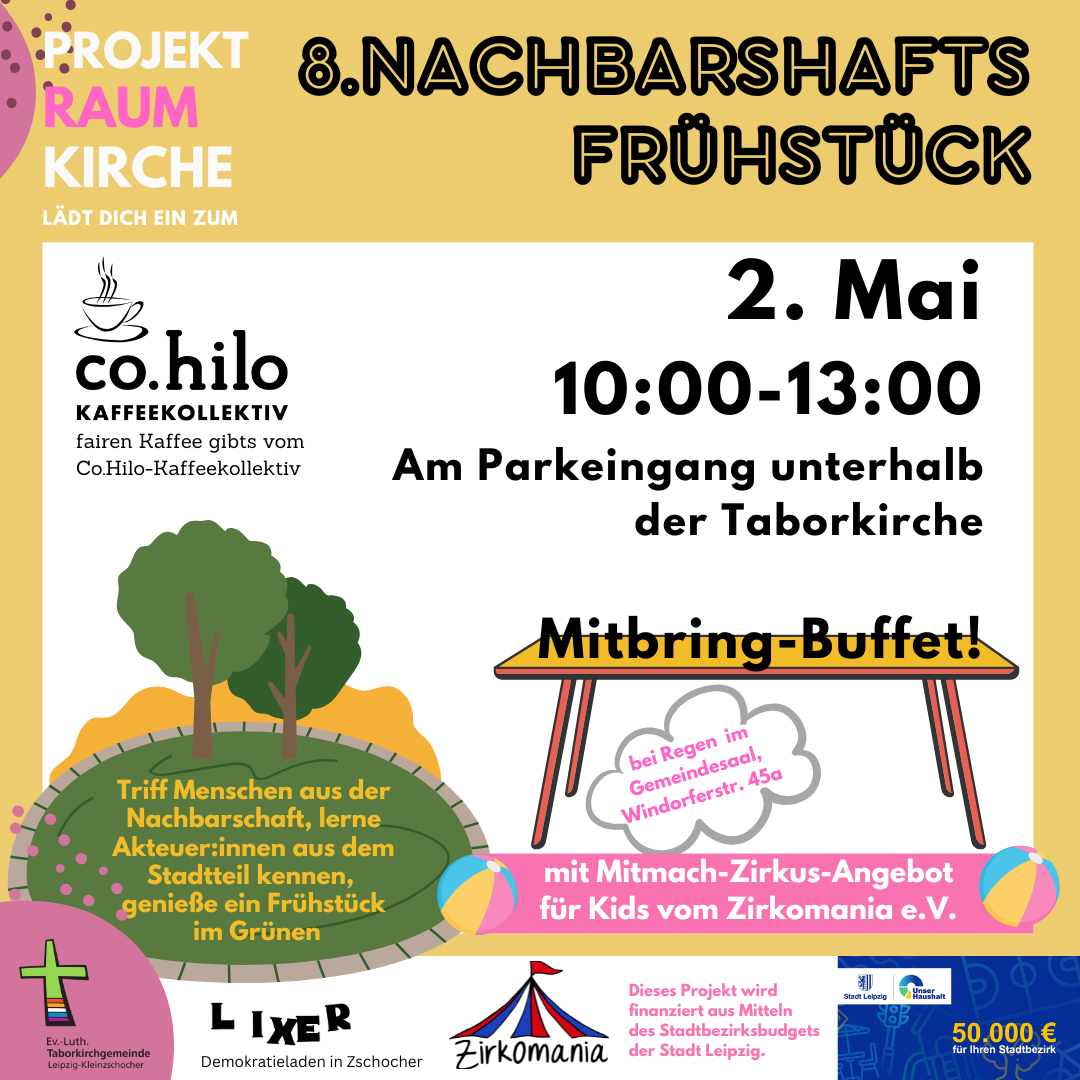 Triff Menschen aus der Nachbarschaft, lerne Akteur:innen aus dem Stadtteil kennen, genieße ein Frühstück im Grünen