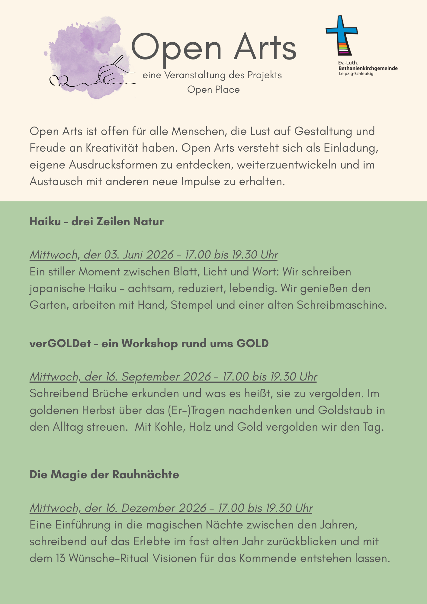 Ev.-Luth. Bethanienkirchgemeinde Leipzig-Schleußig Gottesdienste Kirchennachrichten Aktuelles Förderverein Die Jahreslosung 2026:Gott spricht: Siehe, ich mache alles neu!Offenbarung 21,5